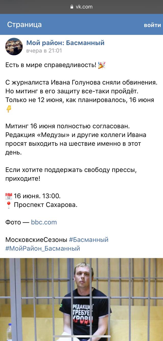 Очень похоже на то, что произошел некий договорнячок. Им выдали журналиста, большой ментовской начальник вышел с аккуратной иезуитской формулировкой "За недоказанностью вины" (заметьте, фразу "В связи с отсутствием состава преступления" никто не произносил), а этому Колпакову сказали "Ну ты, это, людей чтобы больше не мутить, поэл? Никаких смотри митингов!" - так, что ли?