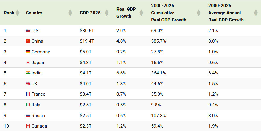 Ну и еще наглядная табличка экономического роста. Самый впечатляющий рост - Индия, Китай и США.