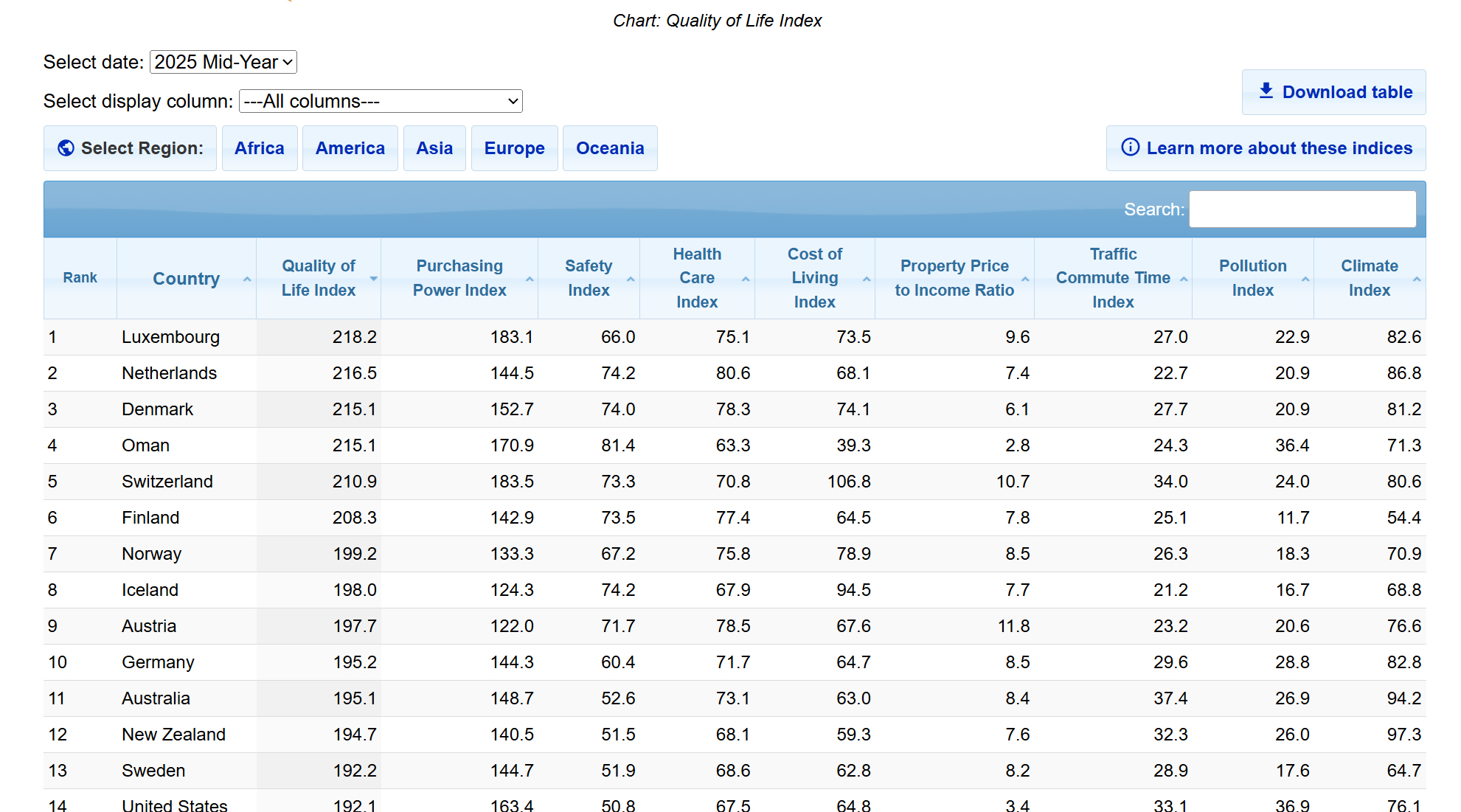 Можно, конечно, много показателей найти. Hо в большинстве случаев по показателям, которые нам были интересны (здравоохранение, образование, охр окр среды, "щасье" и пр) рейтинги получались примерно одни и те же. Кроме количества солнца и количества суицидов (наверное, из-за количества солнца). Поэтому решили, что скандинавия это пока слишком.
