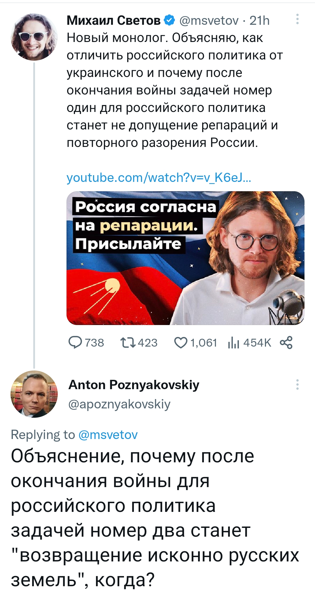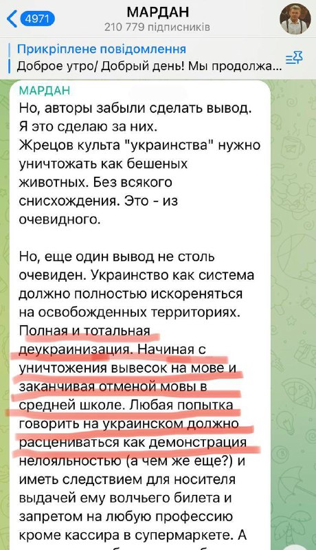 Странно, что ты не видишь разницы между рашистским 'задавим Украину, ни шагу назад ' и украинским 'освободим Украину, ни шагу назад'.