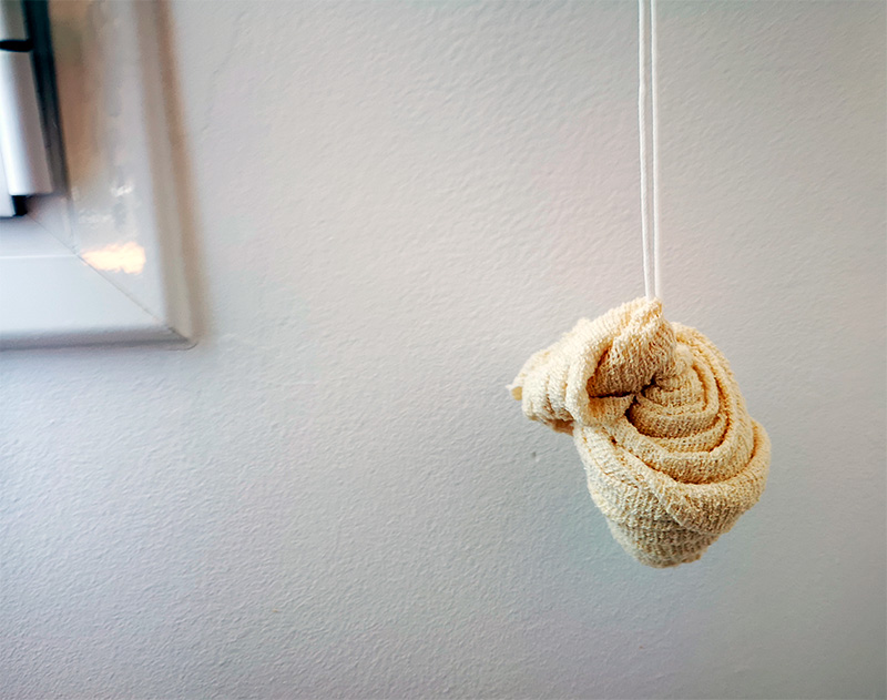 Дано. Открытое сверху окно в коридоре. Рядом с окном висит веревка, регулирующая открывание-закрывание занавески. Внизу веревки - увесистая бобышечка-отвес из твердого пластика - чтобы веревку сквозняком не носило туда-сюда. Однако когда сквозняк сильный, то веревочку носит уже вместе с бобышечкой, которая со всей дури бьется об стенку, издавая довольно громкой звук. И это немного раздражает - первые десять минут. Вторые десять минут это уже доводит до бешенства, потому что я сижу метрах в пяти от этого места.
