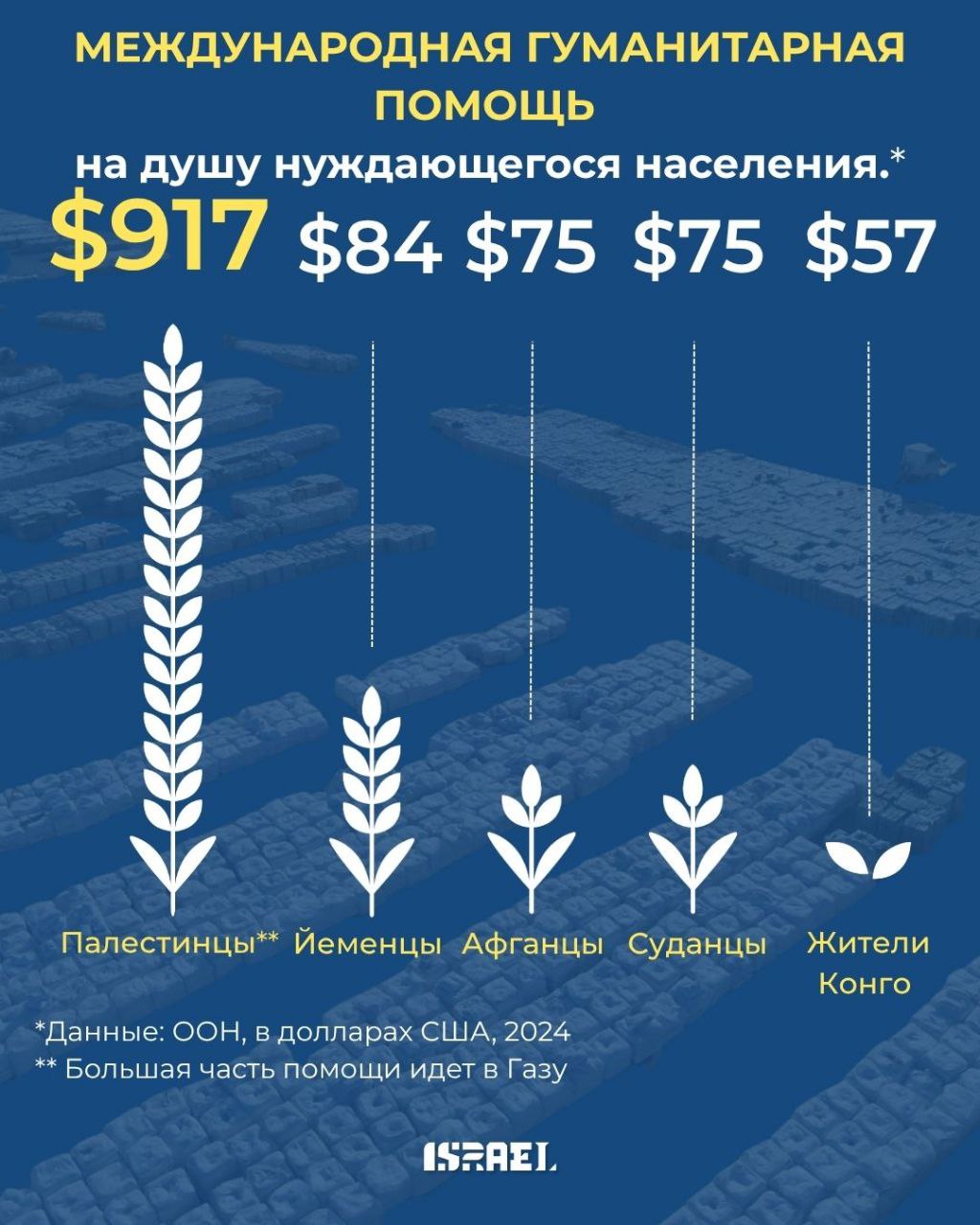 Тем не менее, палестинцы получают в 10–35 раз больше помощи на душу населения, чем нуждающиеся в других зонах конфликта.