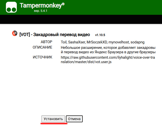 При нажатии ссылки появится вот такое окно (ниже приводится исходный код скрипта), там нужно нажать кнопку "Установить".