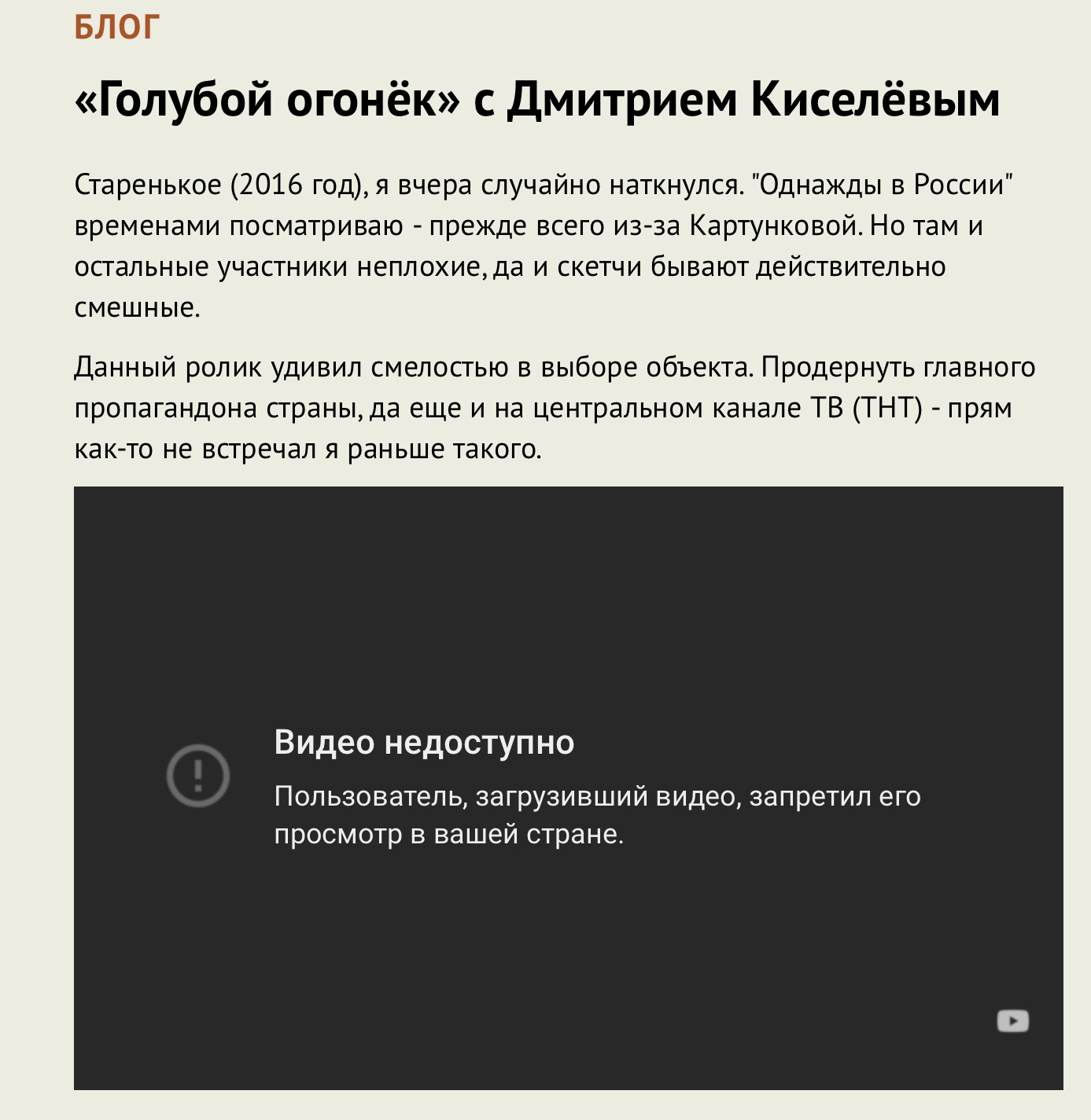 Что характерно, из Украины нельзя смотреть, как обижают главного пропагандона российской страны. 😄