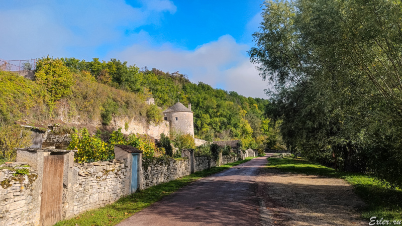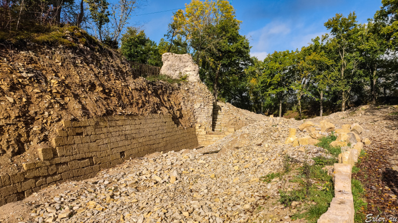 За защитной стеной есть ступеньки, ведущие на вершину холма, где когда-то стоял замок Нойер-сюр-Серейн, который был полностью разрушен в конце 16 века по приказу короля Генриха IV, и там остались одни руины. Сейчас местные энтузиасты пытаются восстанавливать этот замок, там ведутся какие-то работы.