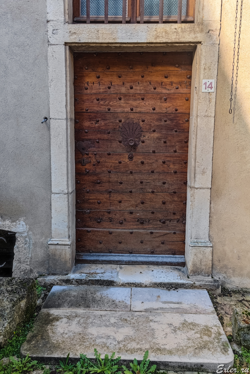 В средние века двери укрепляли вот такими железными вставками: когда нападающие рубили дверь, чтобы ворваться внутрь, то они тупили свои топоры об эти железные блямбы.