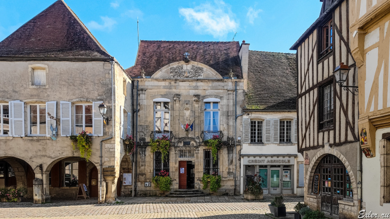 Вот это чудесное здание в центре - мэрия (hotel de ville) XVII века постройки, с колонами и красивыми балконами из кованого железа. Дома на площади построены в XIV и XV веках.
