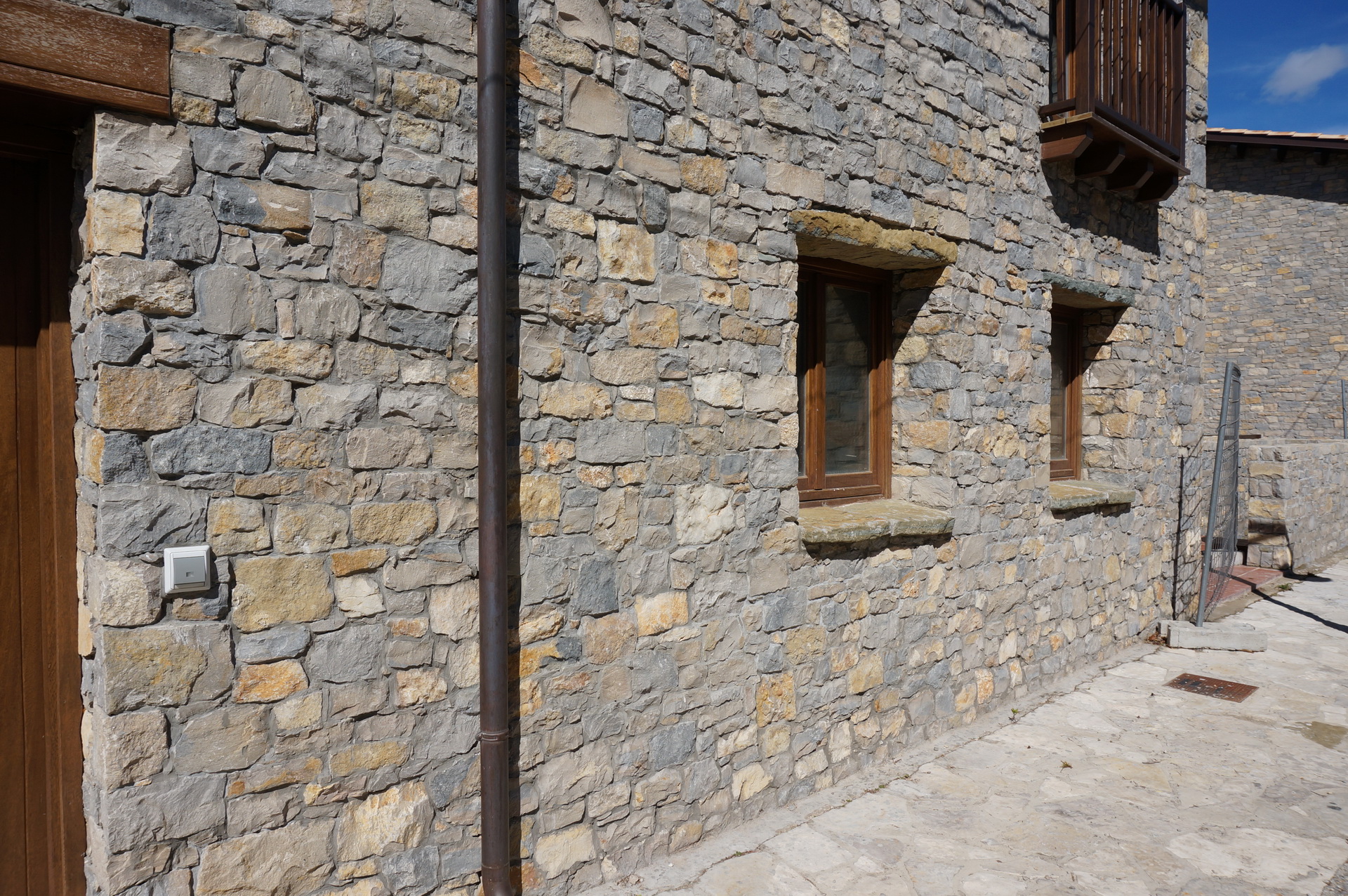 Внутри все аккуратно выкладывается пеноблоками и кирпичиком, а снаружи отделывается обтесанным камнем.