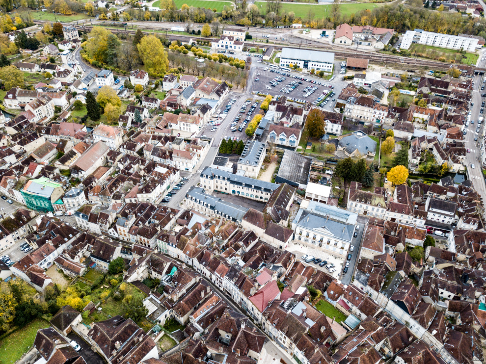 Вот интересный ракурс - церковь Святого Петра слева, а справа виден Ла Фосс Дион (La Fosse Dione) - карстовый источник, расположенный прямо в центре Тоннера. Мы к нему потом спустимся.