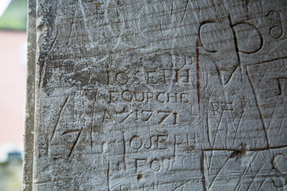 Разумеется, местные жители и туристы что-то там вырезали на колоннах полоскальне. Запись ниже сделана в 1771 году.