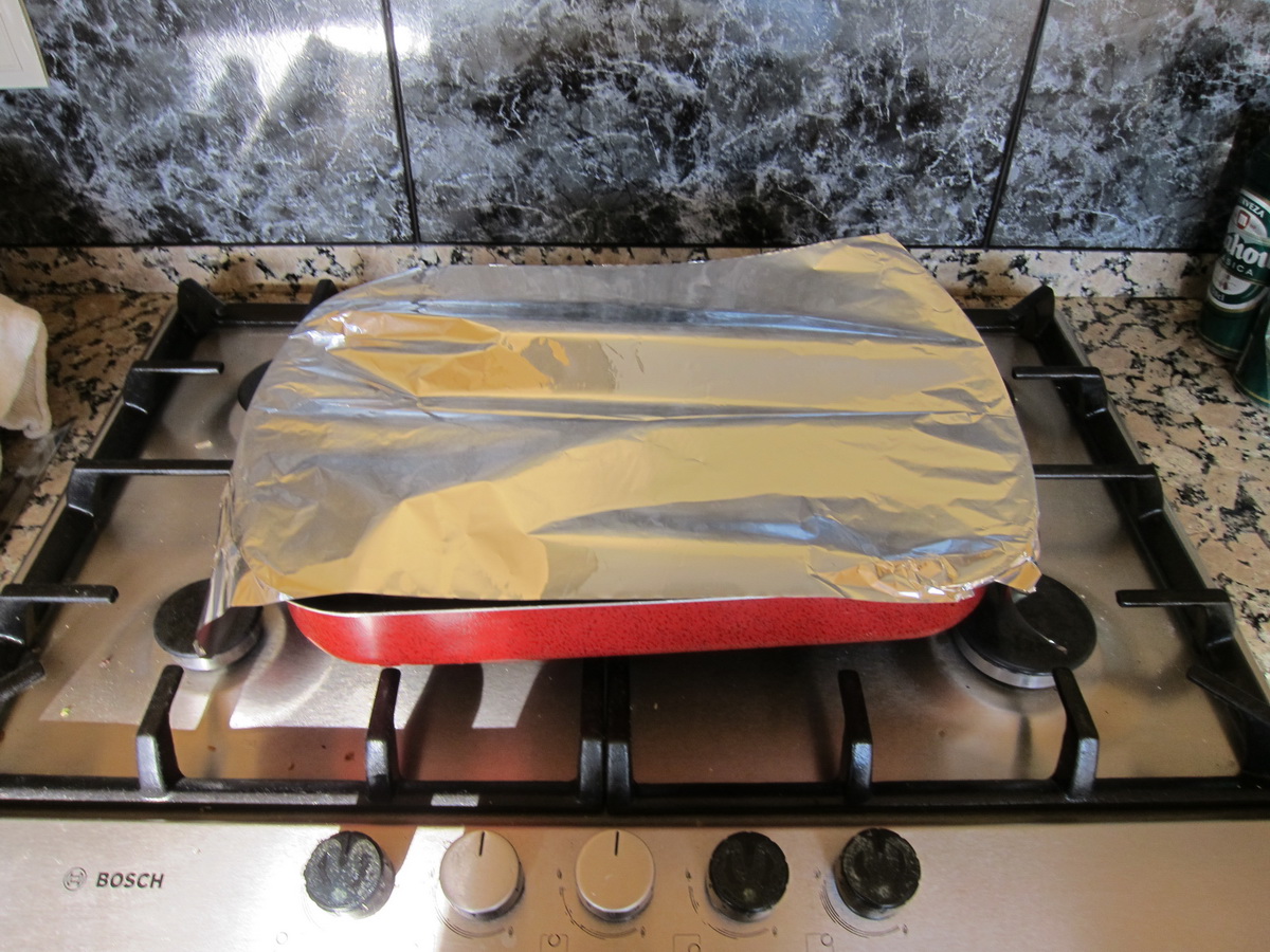 Снимаем, кладем в поддон, накрываем фольгой - пускай отдохнет минут десять.