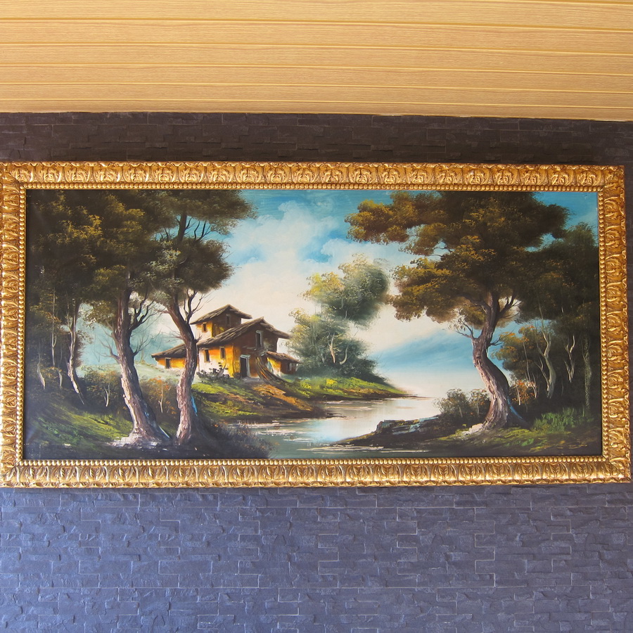 В это время можно приобщиться к прекрасному - насладиться картиной под названием "Заброшенная касапута, печально стоящая на берегу великой реки". Картина куплена для прикола аж за 30 евро вместе с рамой на местном блошином рынке. Куплена в основном из-за рамы, но касапута тоже впечатляет - прямо-таки создает возвышенное настроение.