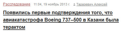 Проходишь по ссылке - никаких подтверждений того, что это теракт - нет по определению. Сам журналист предполагает, что это может быть теракт, потому что, мол, в самолете летел глава республиканского ФСБ. Появилось подтверждение, ага.
