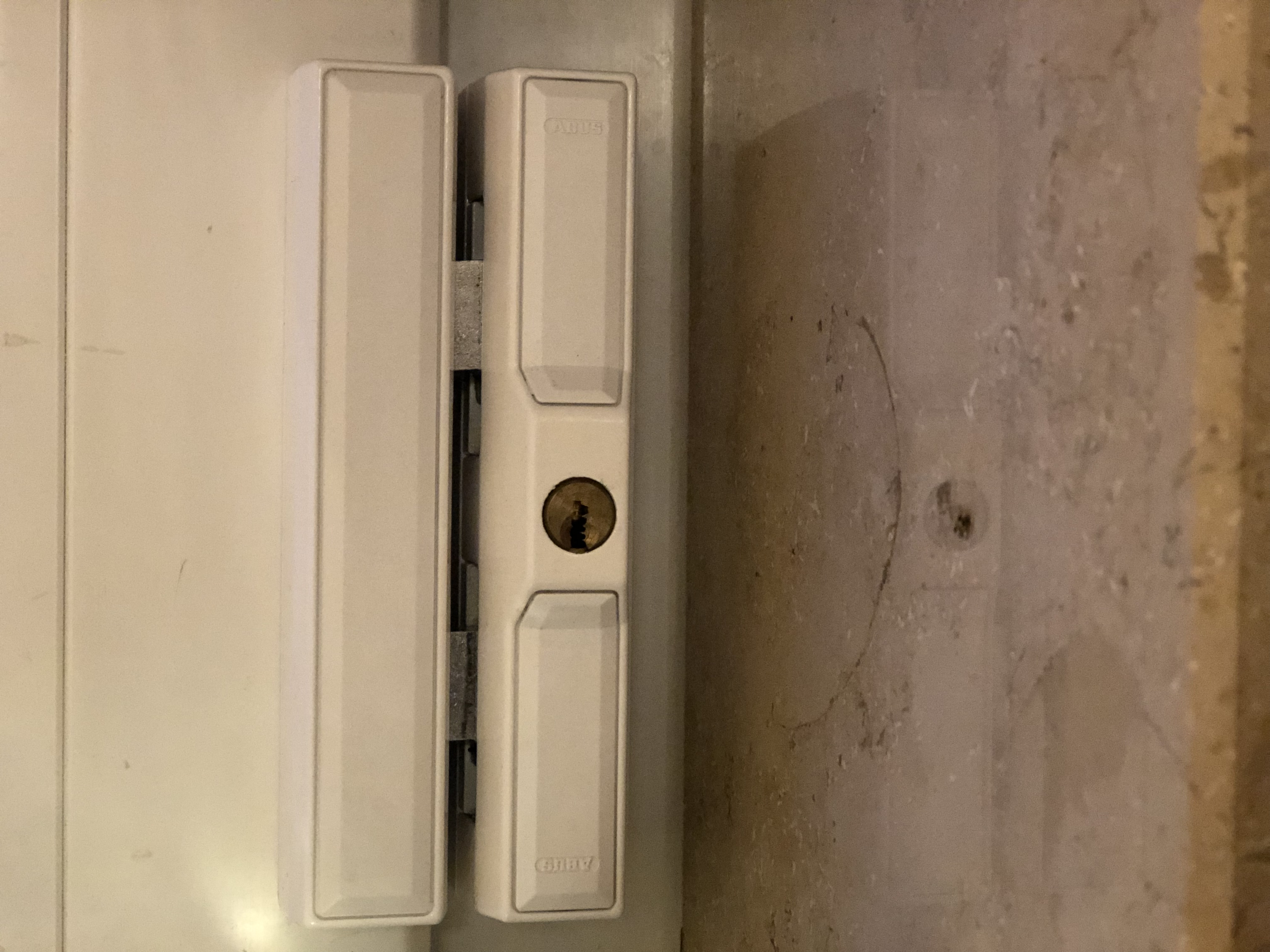 мы поставили вот такие замки на окна. На одно окно два штуки. Нижний, что на фото, всегда закрыт практически, но можно приоткрывать окно на кипу. Вертикальный сбоку блокирует ручку. Закрываем, когда уезжаем на ночь и больше. Также похожий замок на дверь на террасу стоит.