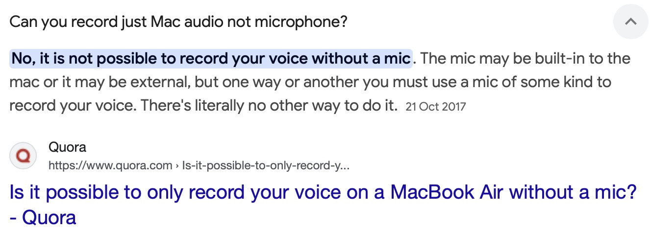 Пользуясь случаем, обращаюсь к владельцам устройств на macOS: как сделать запись экрана, но чтобы запись звука велась не из активного микрофона, а из самой программы? К примеру, отрывок из видеоклипа или фильма. В Screenshot по Shift-Command-5 можно выбрать только встроенные микрофоны и микрофон iPhone'а, но не звук из звуковой дорожки видеозаписи.
