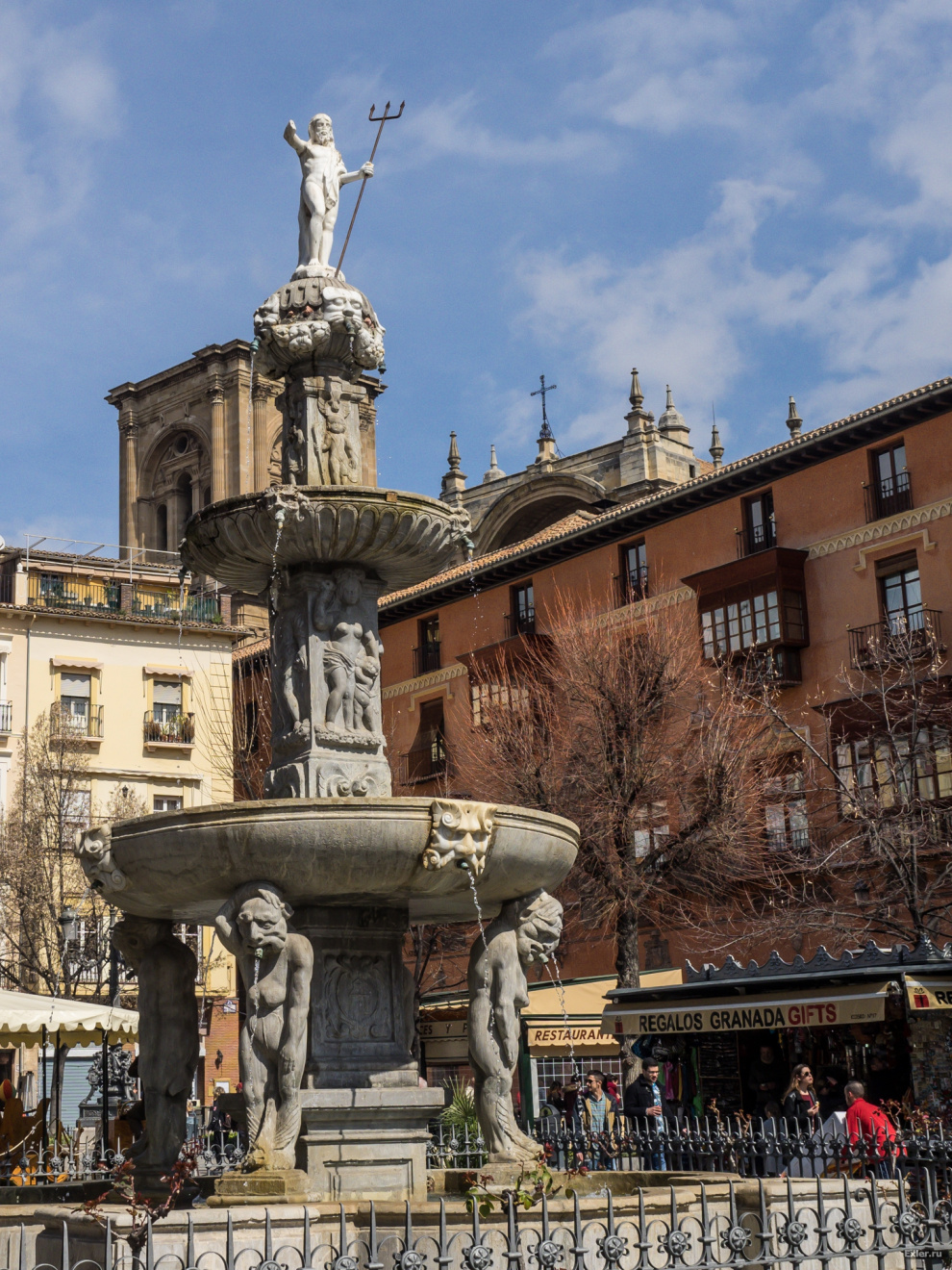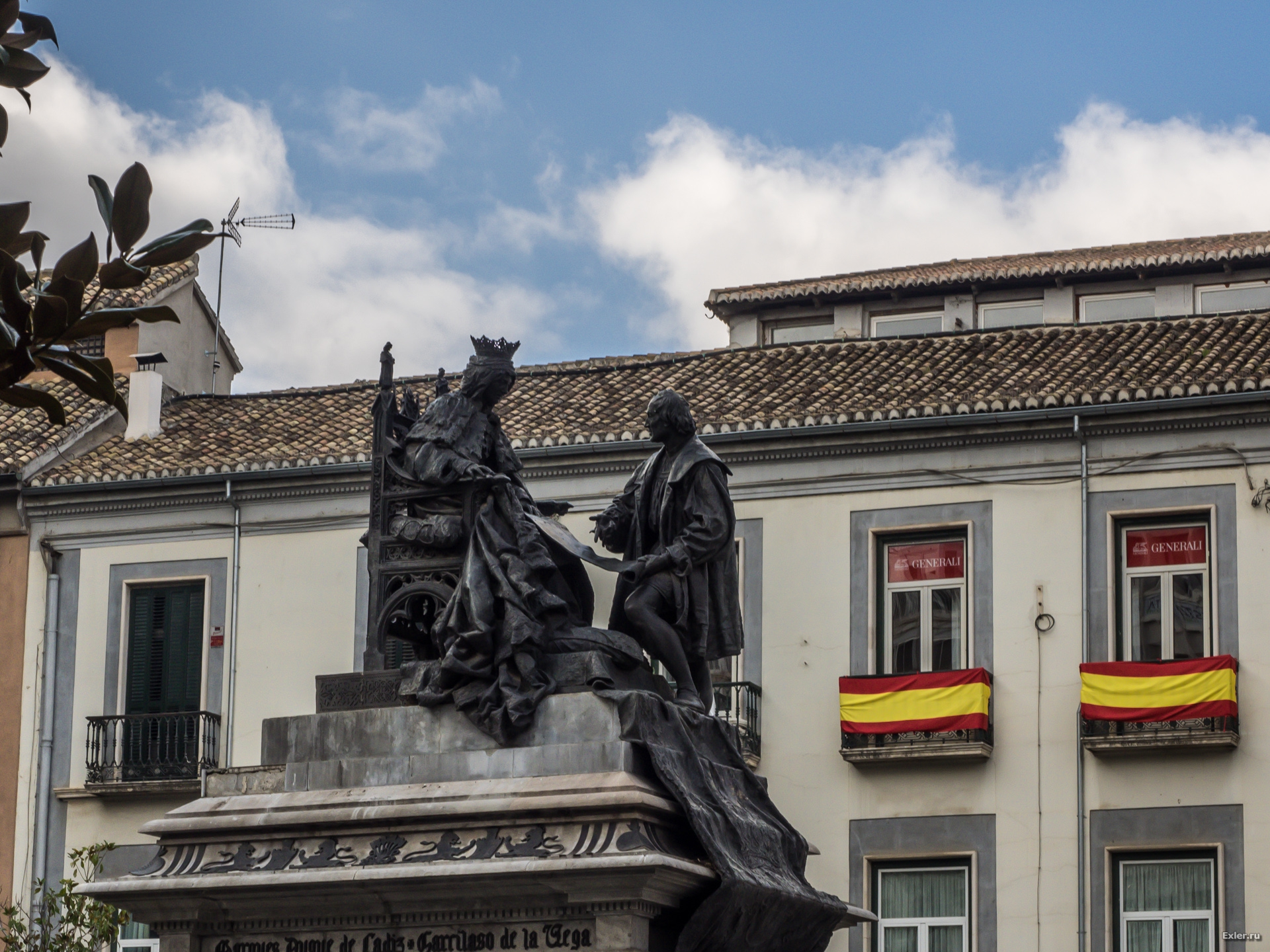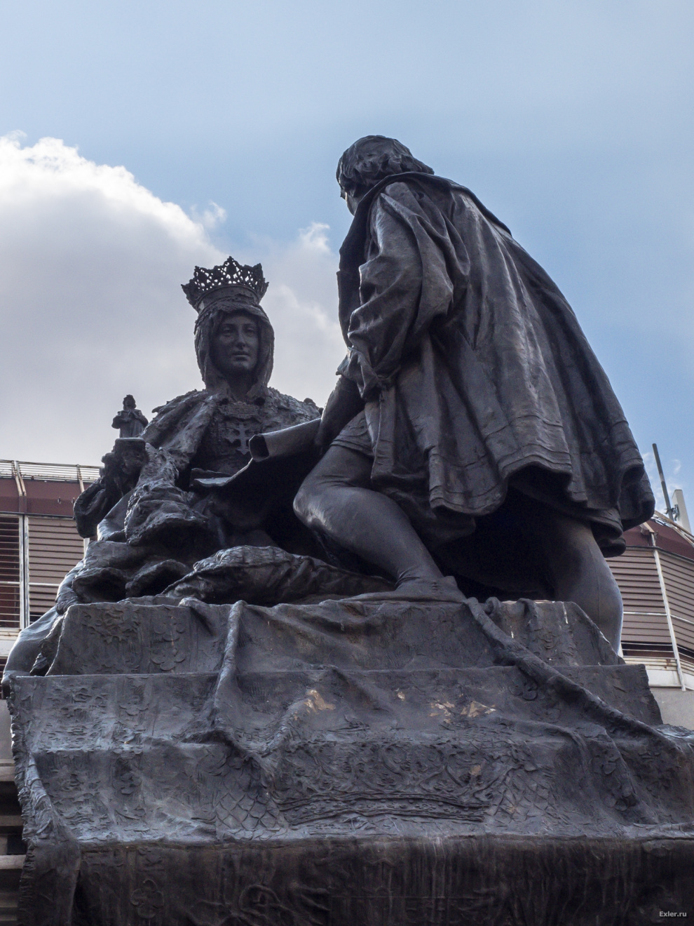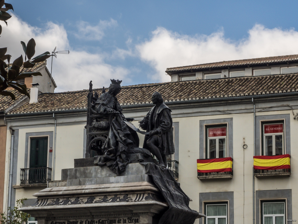 Памятник Кристофору Колумбу (по-испански его имя звучит как Кристобаль Колон) и королеве Исабель Кастильской. На нем запечатлен тот пикантный момент, когда Колумб в очередной раз приехал просил денег на открытие нового пути в Индию, ибо без специй, моя королева, уже ваще не жизнь, и тут Исабель наконец-то дала согласие. Правда, денег у нее на экспедиции Колумба все равно не было, но она пообещала заложить свои драгоценности.