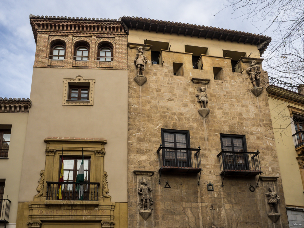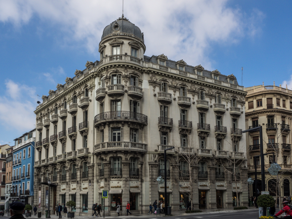 Дом на пересечении главных улиц Гранады - Гран Виа де Колон (Великий путь Колумба) и Рейес Католикос (Католических Королей).