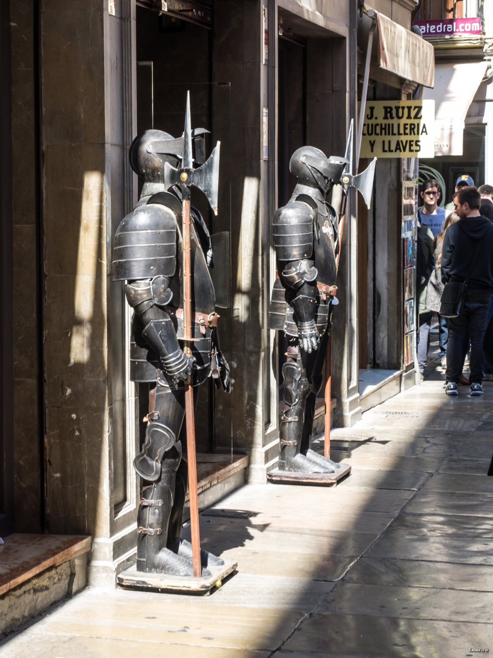 Вот такие фигурки рыцарей в полном облачении нередко встречаются в южной части Испании. Обычно они стоят у магазинов с сувенирами. В этих магазинах можно купить различное рыцарское снаряжение, часть рыцаря, половинку рыцаря и даже целого рыцаря - например, чтобы поставить у себя на участке.