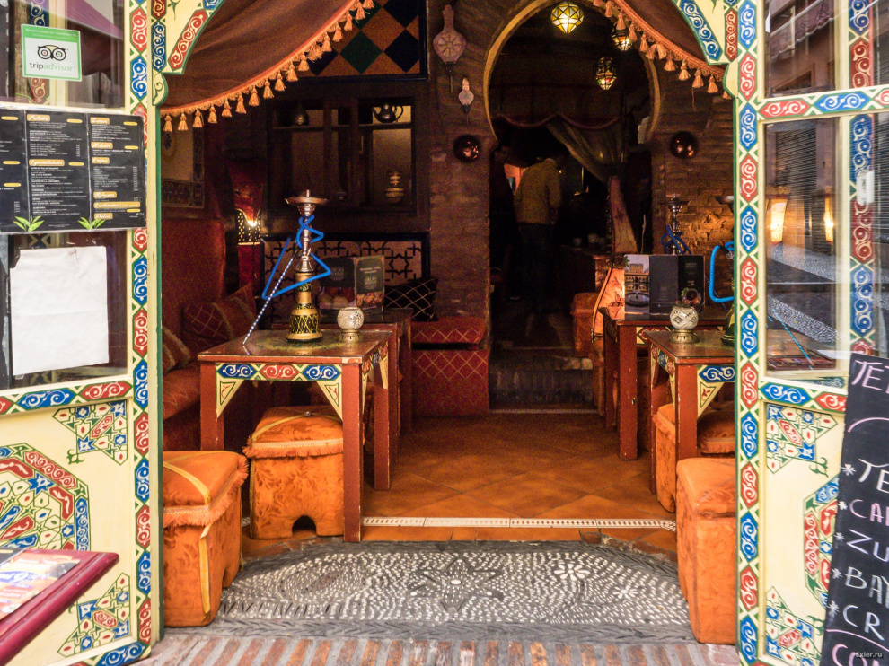 Арабская кафешка с кальяном. Я не проверял, но вполне возможно, что алкоголь там подают: исламские короли, когда приезжали в Кордобу-Гранаду, довольно быстро начинали ценить местные удовольствия и вино-то попивали, чему есть много свидетельств. С другой стороны, как можно жить в Испании и не пить вино? ¡Imposible absolutamente!