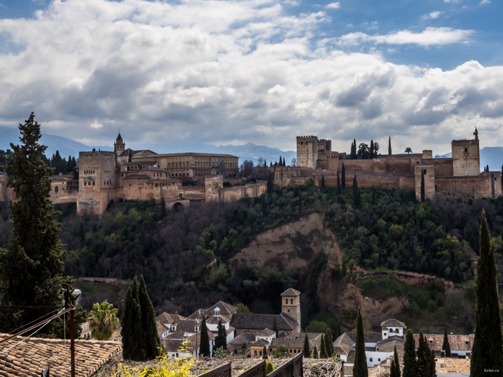 А это мы поднялись на самый верх района Альбайсин, где находится обзорная площадка, откуда открывается шикарный вид на Альгамбру - вот этот дворцовый комплекс.