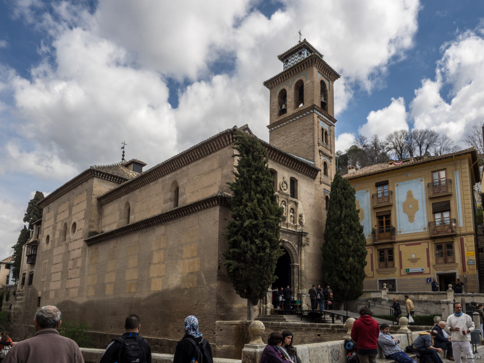 А это - церковь Санта-Ана, находящаяся на Новой площади у подножия холма с Альгамброй. Традиционное для Андалусии строение. Сначала на этом месте была мечеть Аль-яма Альманзора. Потом, когда арабов прогнали, мечеть перестроили в церковь (в 1537 году), минарет перестроили в колокольню и вот - церковь готова. Иногда бывало так, что мечеть сначала перестраивали в синагогу (когда евреи были в чести), а потом, когда евреев изгоняли, мечеть-синагогу превращали в церковь. В Севилье есть чудесная церковь, в которой сохранились элементы и мечети, и синагоги - это очень прикольно (я ее покажу в репортаже по Севилье). Это Андалусия, это ее стиль.