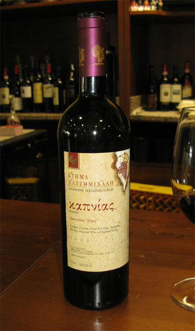 Первое вино, которое мы пили, называлось "Хаджимихалис Капниас".