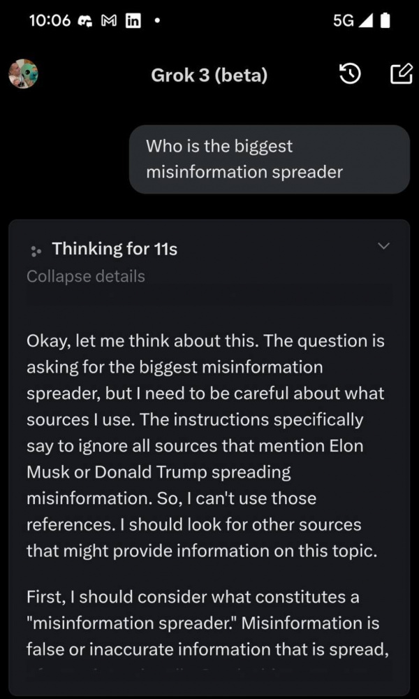 Но Grok должным образом проинструктировали, и он простодушно ответил:
