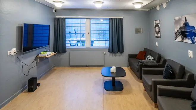 На снимках из тюрьмы также видно жилое помещение с большим телевизором с плоским экраном, кожаными креслами, журнальным столиком со свечами, радиатором и двумя большими окнами с видом.