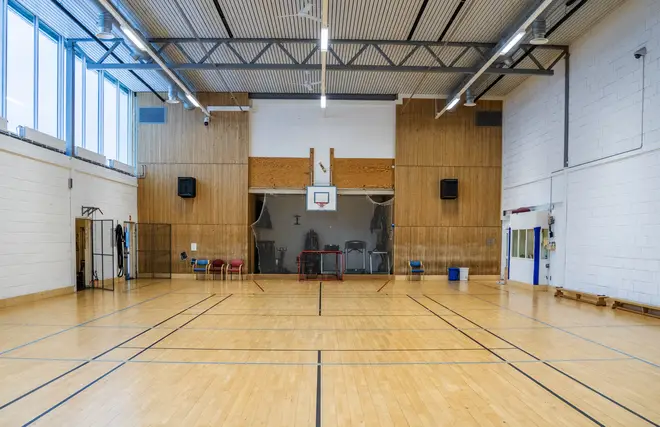 На кадрах из тюрьмы можно увидеть библиотеку, заполненную книгами, крытый сад, засыпанный снегом, баскетбольную площадку и столовую.