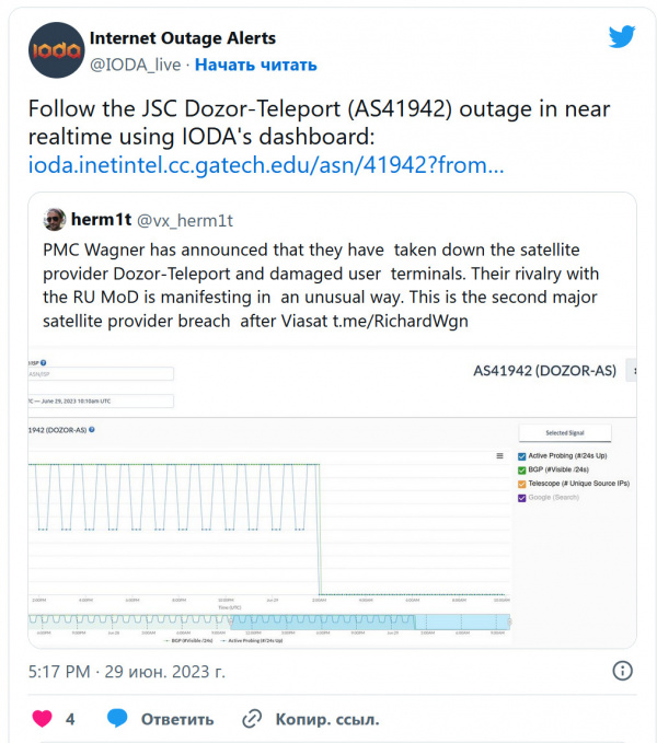 Ну и вот, кстати, этот пост IODA с графиком работы "Дозор-Телепорт", о котором говорится в сообщении BBC.