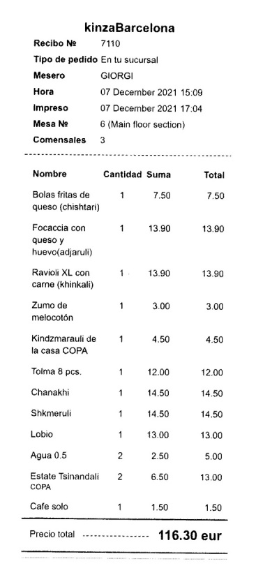 Вчера мы собрались в Барселону на интерактивную выставку по жизни и творчеству Ван Гога, ну и решили перед выставкой посетить какой-нибудь ресторан. Жена выяснила, что в Барселоне есть ресторан грузинской кухни Kinza, отзывы на него были хорошие, ну мы и решили его посетить, а то давненько не были в ресторане с кавказской кухней.