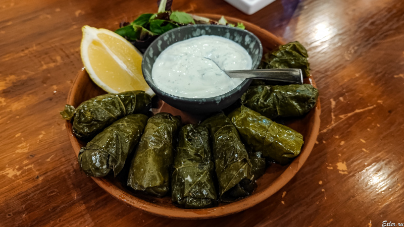 Долма. Мой заказ все никак не несли, даже салат не принесли, так что попробовал долму. Отличная, реально вкуснейшая. Я долму раньше не особо любил - видимо, просто не умели ее готовить. Здесь - явно умеют.