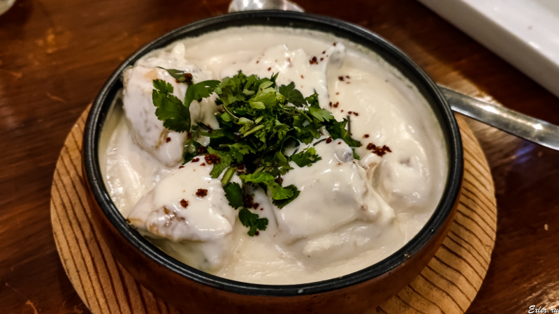 Салат мне так и не принесли, зато притащили шкмерули. И это было единственное блюдо, которое мне не сказать что понравилось. Я почему-то думал, что шкмерули делают из каких-то других частей курицы, а тут были только грудки, которые я не особо люблю. Нет, приготовлено хорошо, блюдо вкусное и нежное, но это просто мои личные предпочтения.
