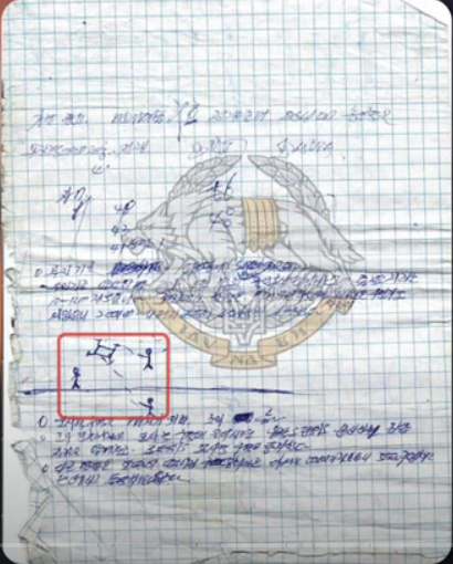 страница из записной книжки пленного (уже мертвого) северного корейца