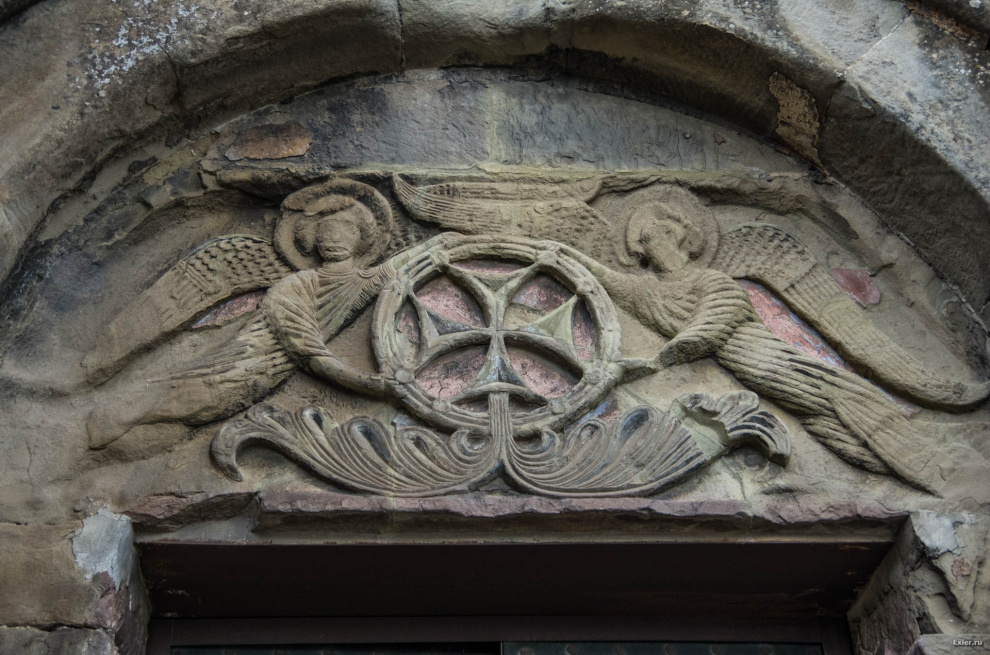 В центре сверху - Иисус Христос, в центре снизу - животворный столп, сделанный из кедра, который Ангел поднимает ввысь как в Воздвижении Креста. В честь этого животворного столпа создан главный в Грузии собор, находящийся в городе Мцхета - этот собор виден с горы, где расположен храм Джвари.