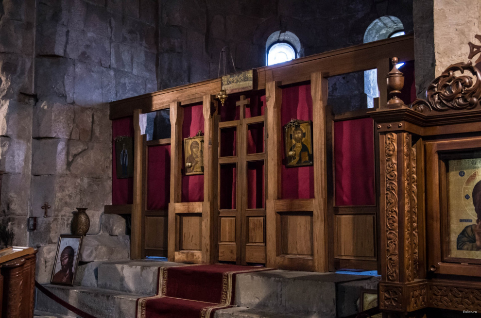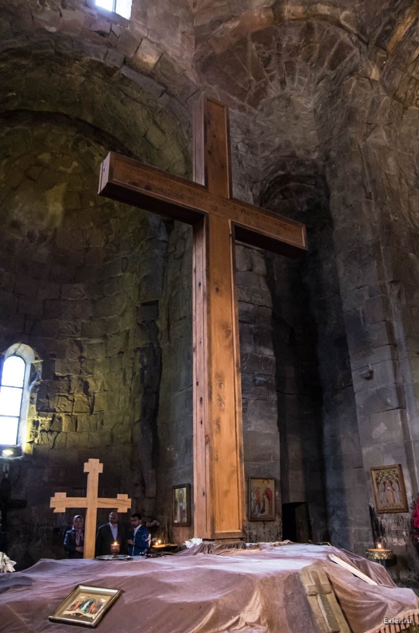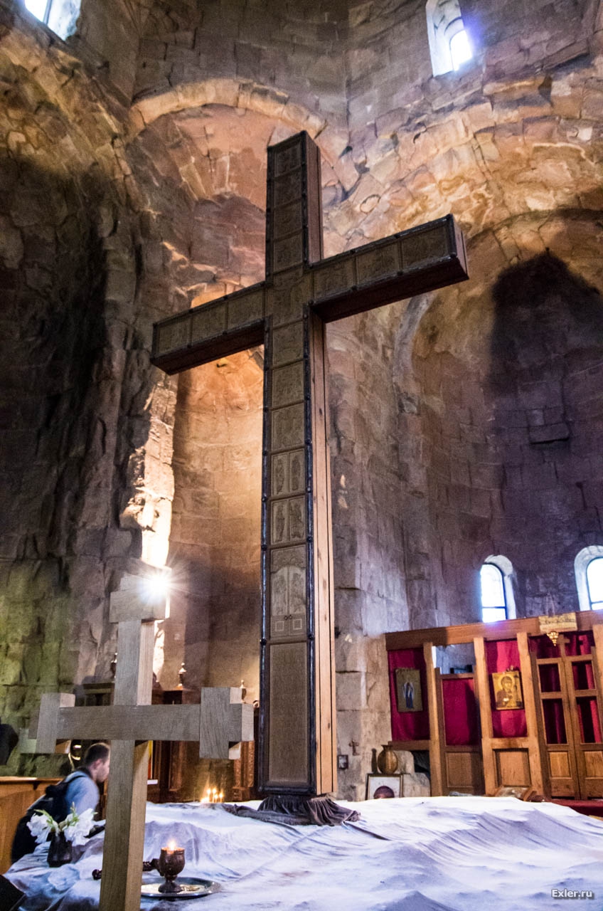 Крест, установленный в центре храма на возвышении. По преданию, именно на этом самом месте святая Нина воздвигла свой крест.
