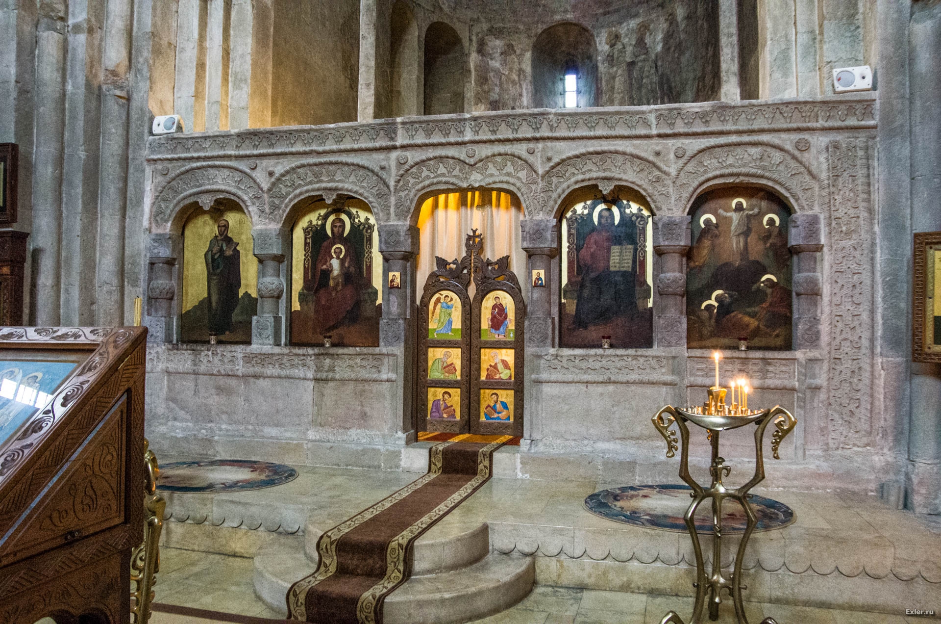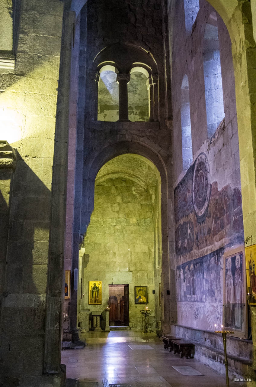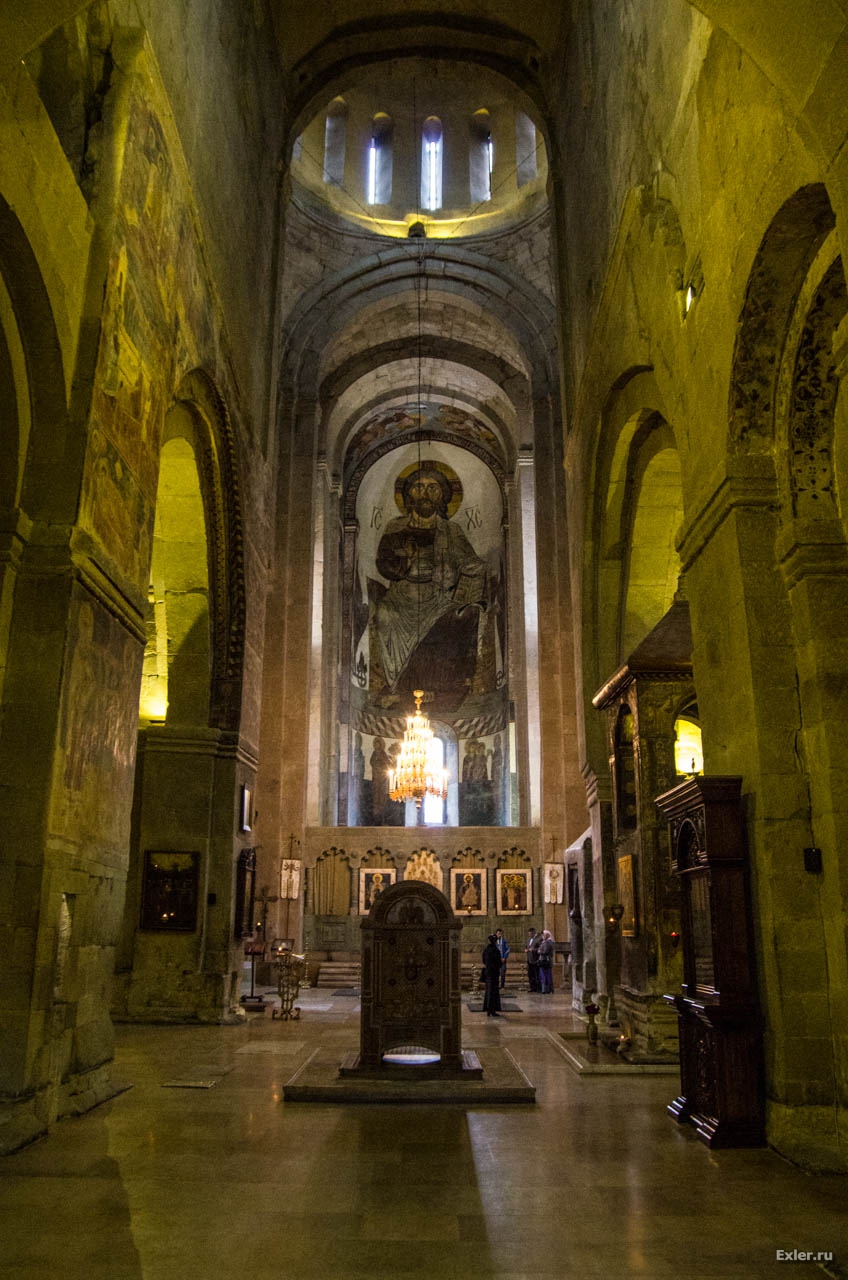 Храм внутри - огромен. Собственно, это на данный момент - самое крупное сохранившееся церковное здание в Грузии. Собор Святой Троицы больше него, но это чистый новодел.