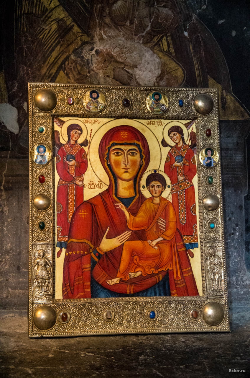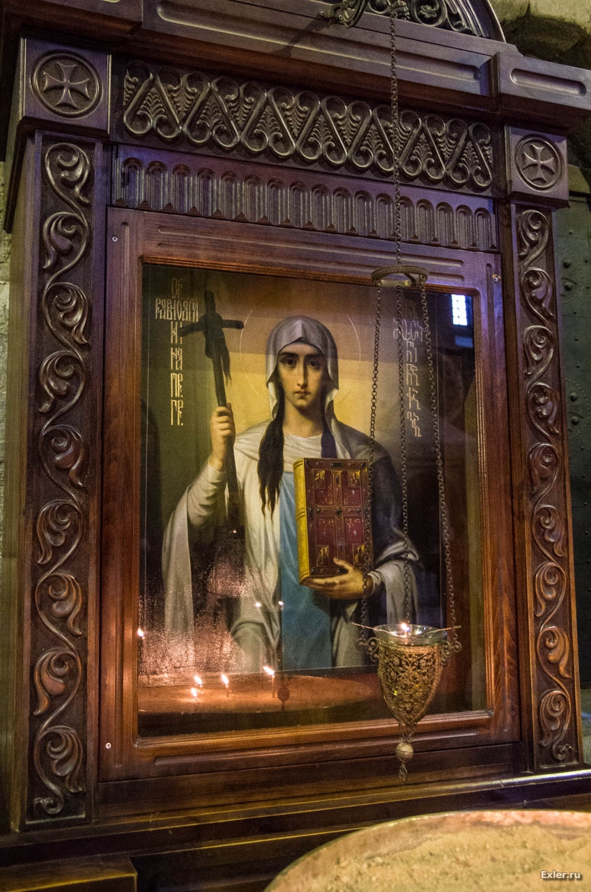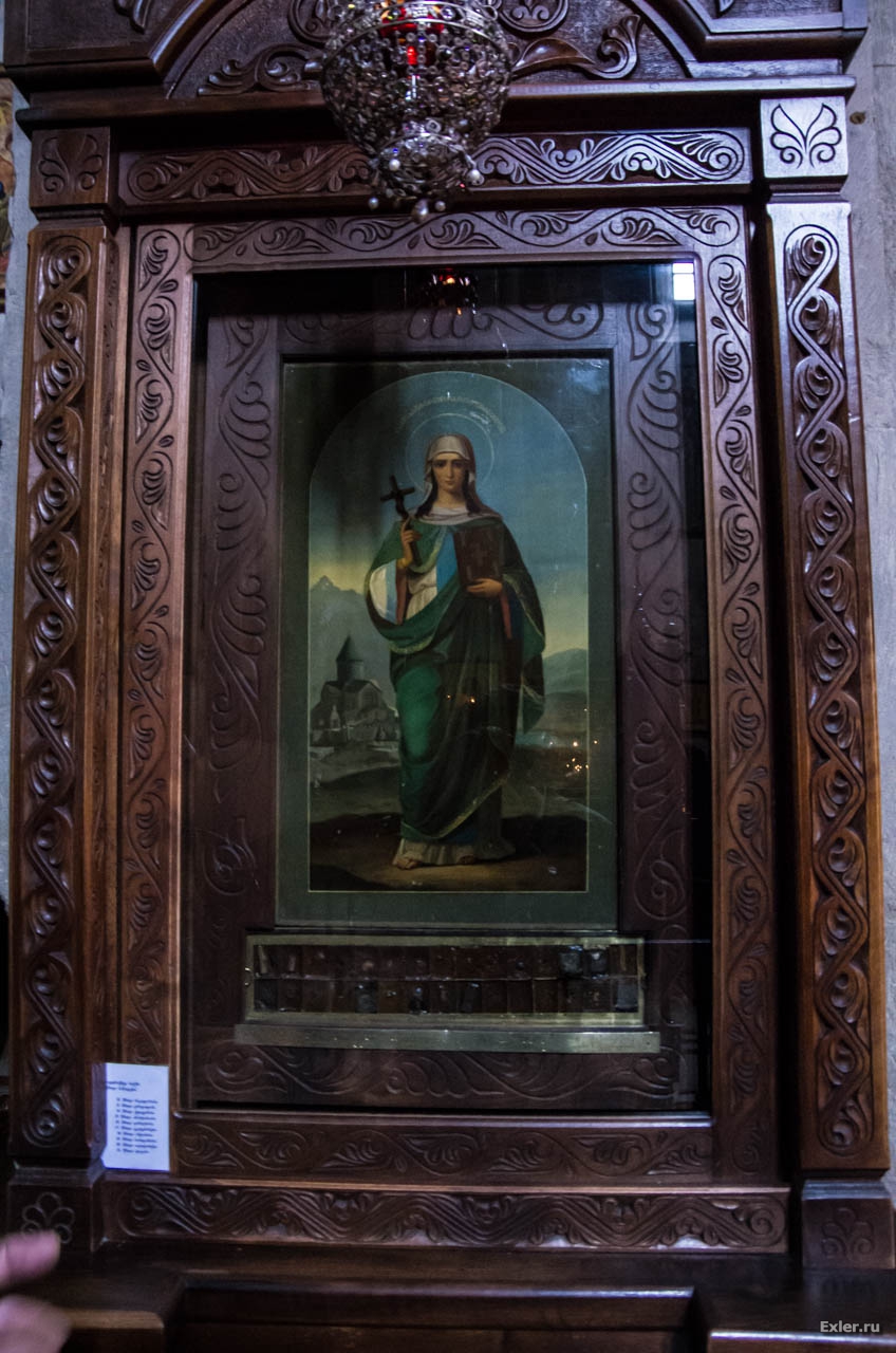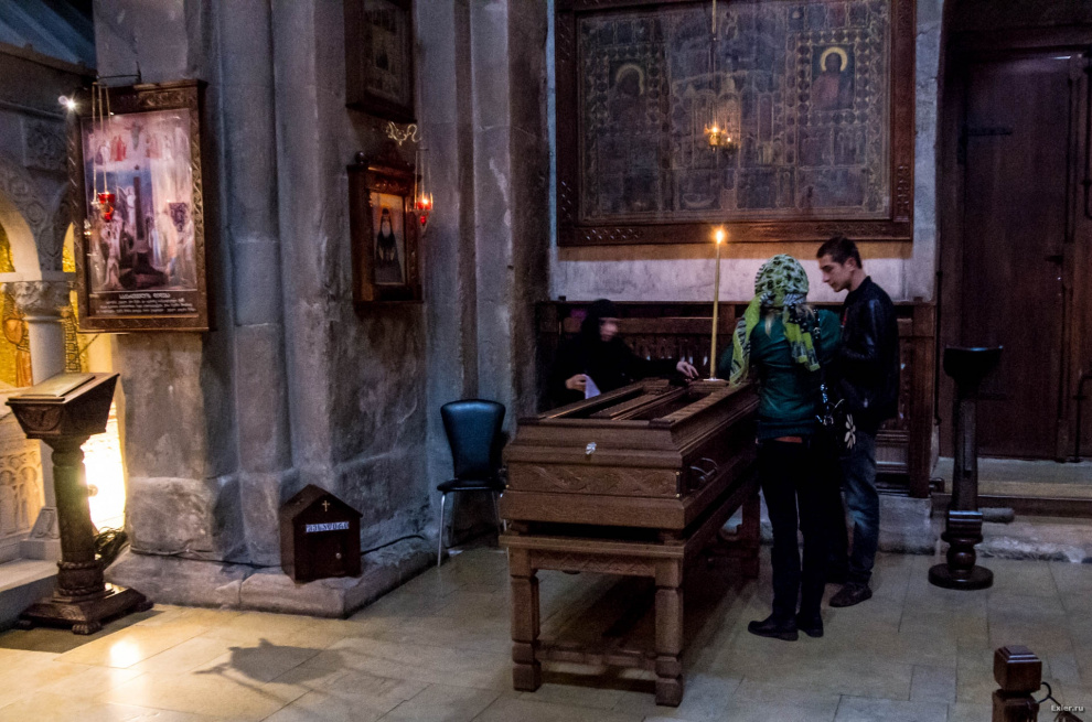 А это усыпальница с мощами святого Гавриила (Ургебадзе). Сюда часто приходят больные (в том числе и дети) - считается, что могила святого Гавриила излечивает больных. (Я так понял, что раньше эта усыпальница была вне церкви, на территории монастыря, но сейчас ее перенесли в церковь.)