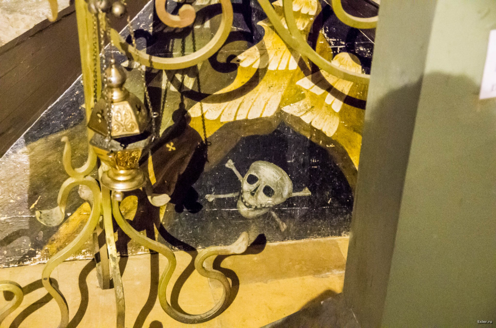 А под распятием - вот такое изображение. Не все знают, что так внизу распятий изображался Адам - первый человек.