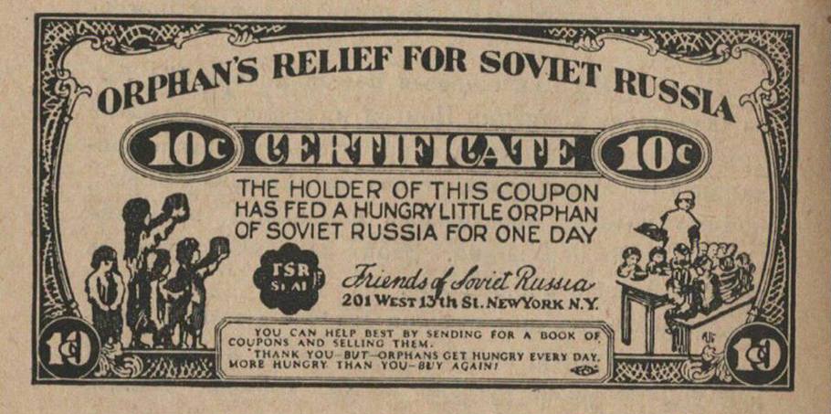 В детстве читала книгу Михаила Ляшенко Из Питера в Питер. Там как раз описывается помощь американского Красного креста, как в 1918 году чета американских миссионеров спасала от голода, эпидемий, войны несколько сотен питерских детей, отправив их в эшелоне на Урал и дальше на Восток, а потом и в США. Правда в США детишки оставаться не захотели и решили вернуться "строить новый мир". Это наверно одна из немногих, а может и единственная, книга из художественной литературы, где упоминается помощь США в борьбе с голодом в годы Гражданской войны в России.