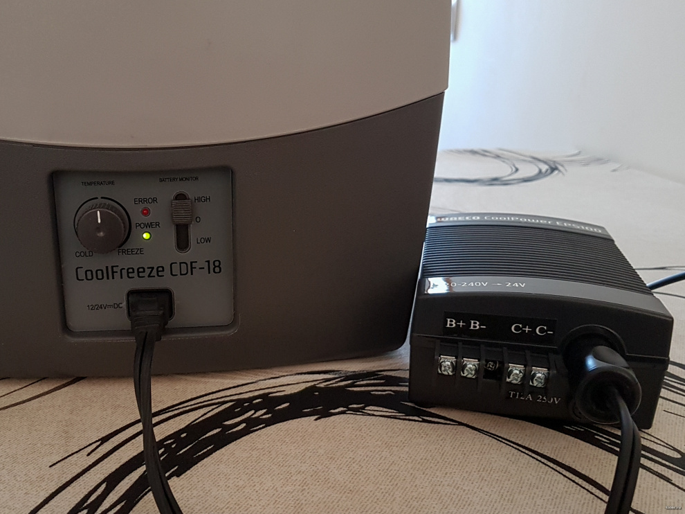 Тогда внимательно прочитал инструкцию и взял их фирменный выпрямитель Waeco CoolPower EPS100 - вот с ним холодильник от розетки заработал так, как надо.