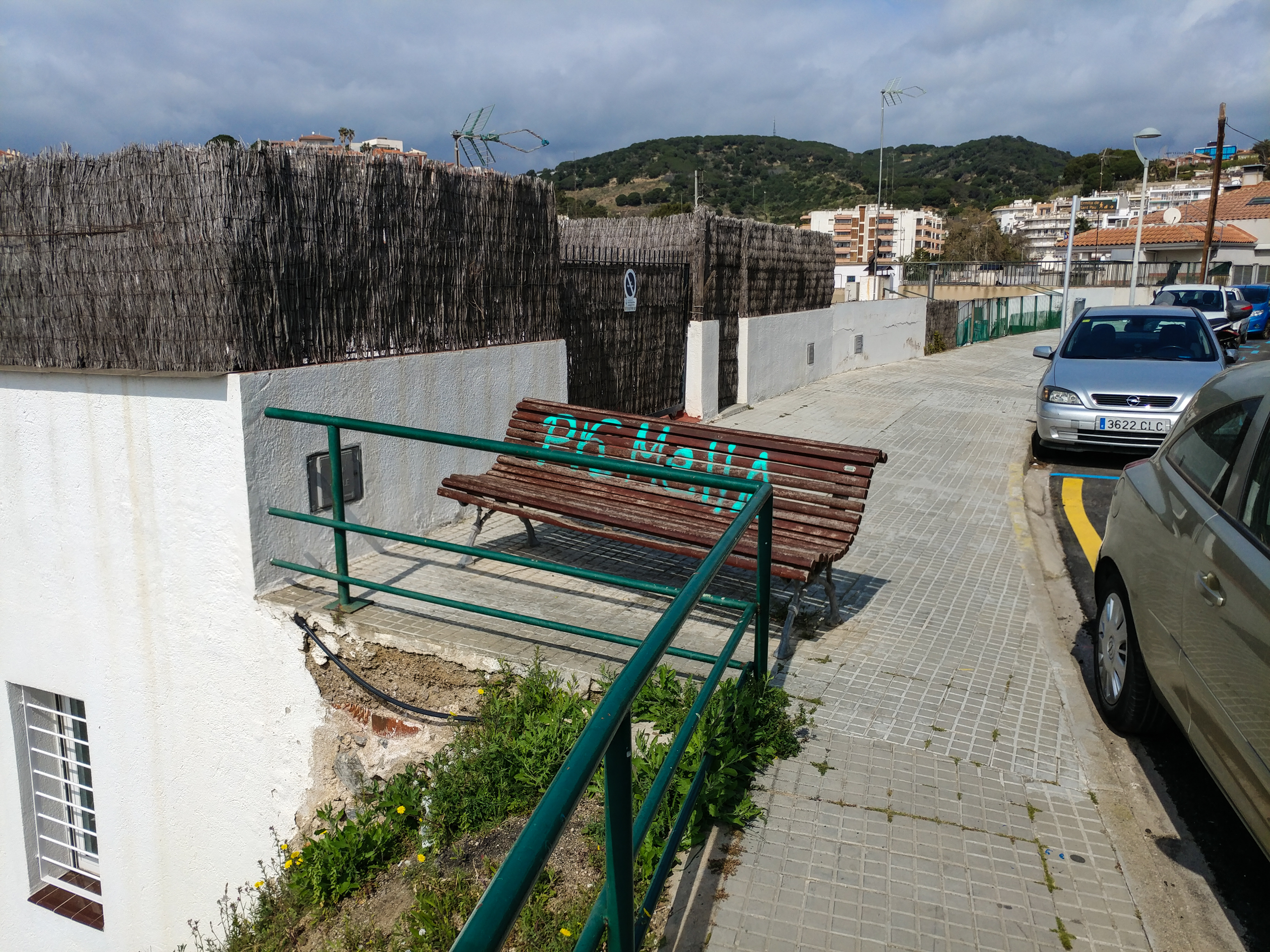 Вчера иду на прогулке, подхожу вот к этой скамейке. Там на краю сидит мужик, который достал бутерброд - здоровенный кусок каталанского хлеба, натертого чесноком и политого оливковым маслом, на который сверху мелко порублен ровный слой помидоров, посыпанных солью. Мужик правую кисть сложил эдаким тюльпаном, положил на нее бутерброд и собирается от него откусить. Бутерброд пахнет на всю улицу свежестью, красотой и здоровьем. Я, совершенно автоматически, желаю ему приятного аппетита (buen provecho это называется). Мужик, совершенно автоматически, вздрагивает, успевает сказать gracias, но при этом от сотрясения бутерброд сваливается с "тюльпана" и, красиво перевернувшись помидорами вниз, шлепается прямо на плитку, чмокнув от наслаждения. Мужик тут же произносит классическое испанское "Joder", которое на русский вполне можно перевести как "Твою мать", причем подлинный смысл этого ругательства не имеет никакого отношения ни к сексуальным контактам, ни к близким родственникам.