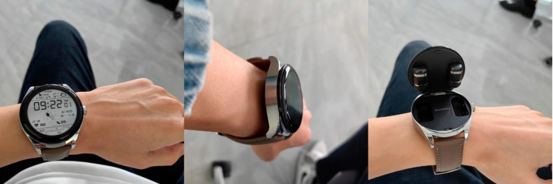 В преддверии скорой презентации HUAWEI в сети появились качественные фотографии смарт-часов Watch Buds. Напомним, что ключевой фишкой этой модели станут встроенные беспроводные наушники — другими словами, это два устройства в одном.
