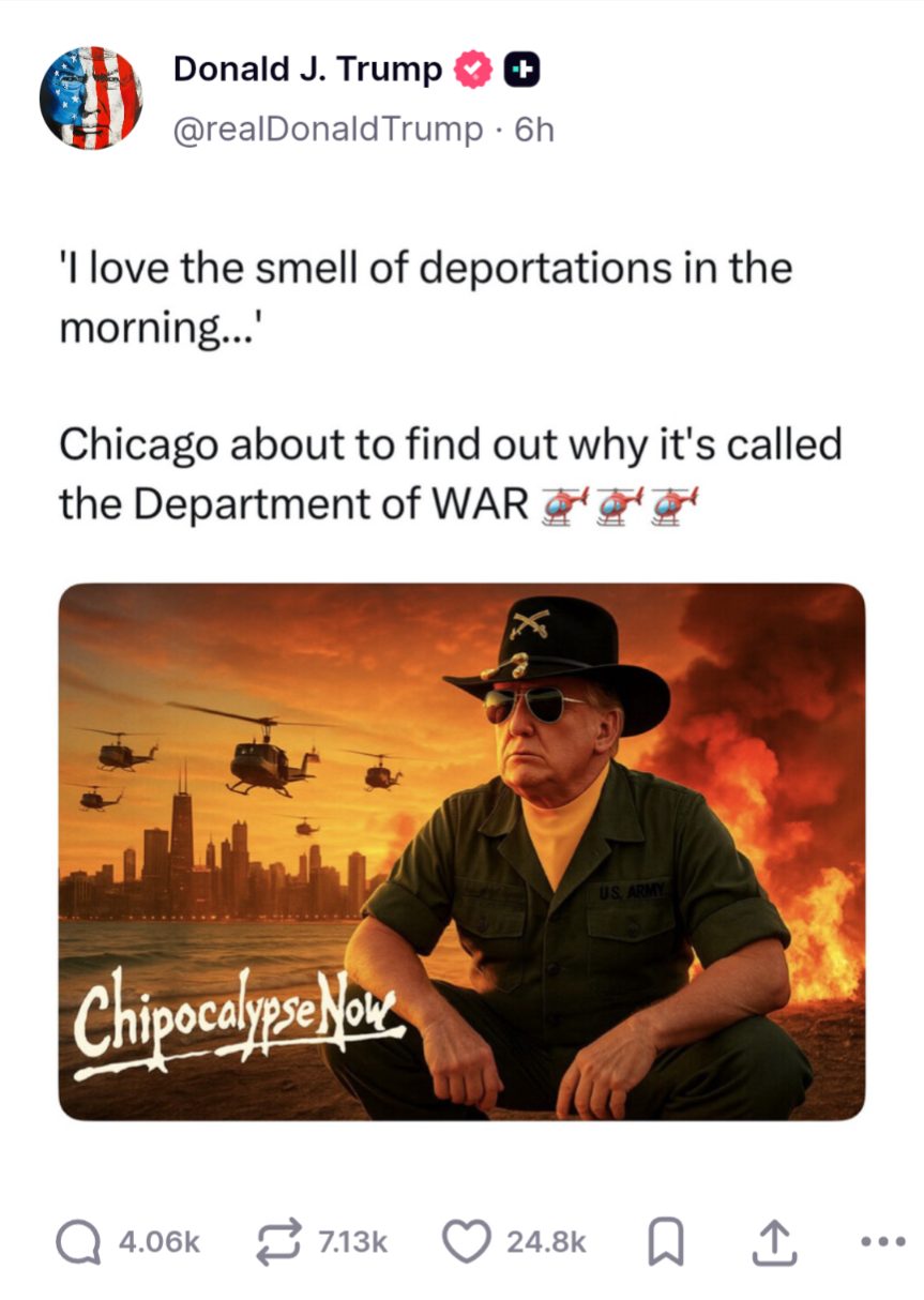 Останавливатель всех войн переименовал министерство обороны в министерство войны.