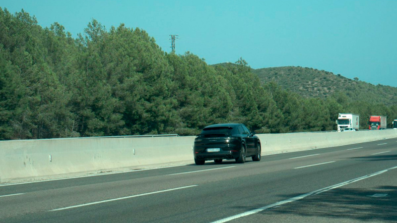 Это не Кайен, а Макан. Судя по длине надписи, Macan GTS, почти топовый (кроме очень редкого Turbo) двигатель. Чуть сильнее на газ нажал -- и 250 в час. Водителя понимаю, но не одобряю. Сам больше 160 км в час не езжу по обычным дорогам, хотя Audi A7 такой скорости вобще не чувствует.