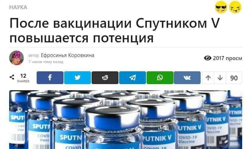 Напоминаю: полтора года назад про сам ковид говорилось с такой же уверенностью как и сегодня про спутник - вполне вроде адекватными и при должности людьми: не страшнее гриппа, все это фигня, оно только для китайцев и т.п. Сегодня те же примерно люди с той же примерно уверенностью заявляют о вакцине как о проверенном и без побочек средстве профилактики.