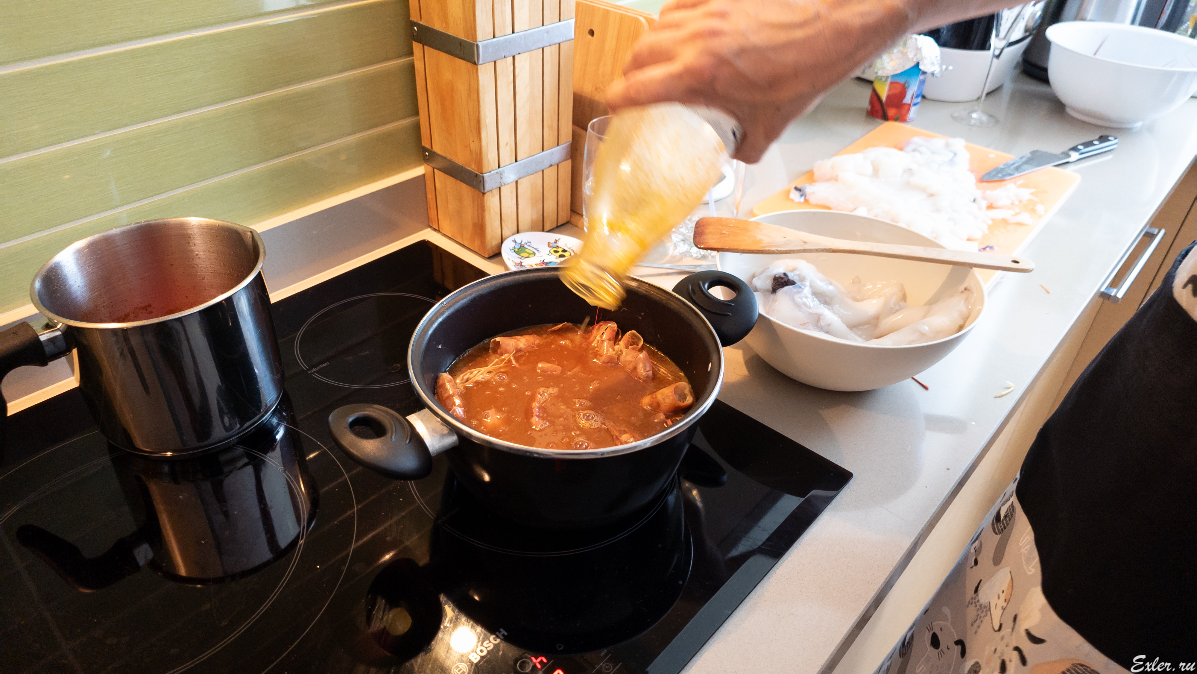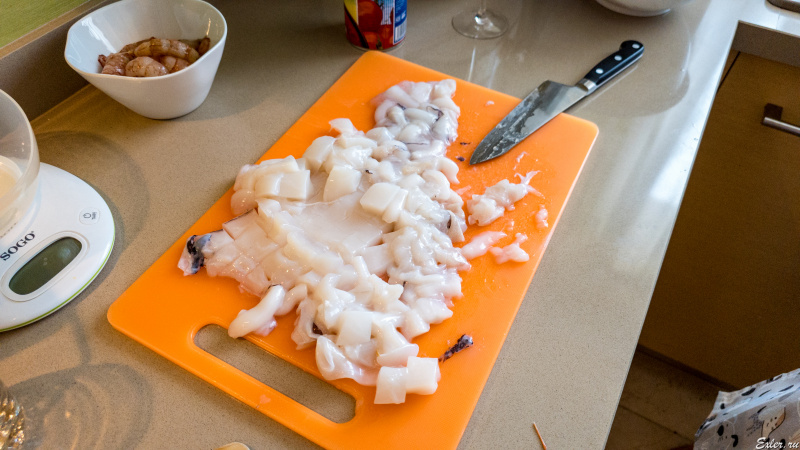 В этот раз мы делали паэлью с морепродуктами по рецепту Влада.