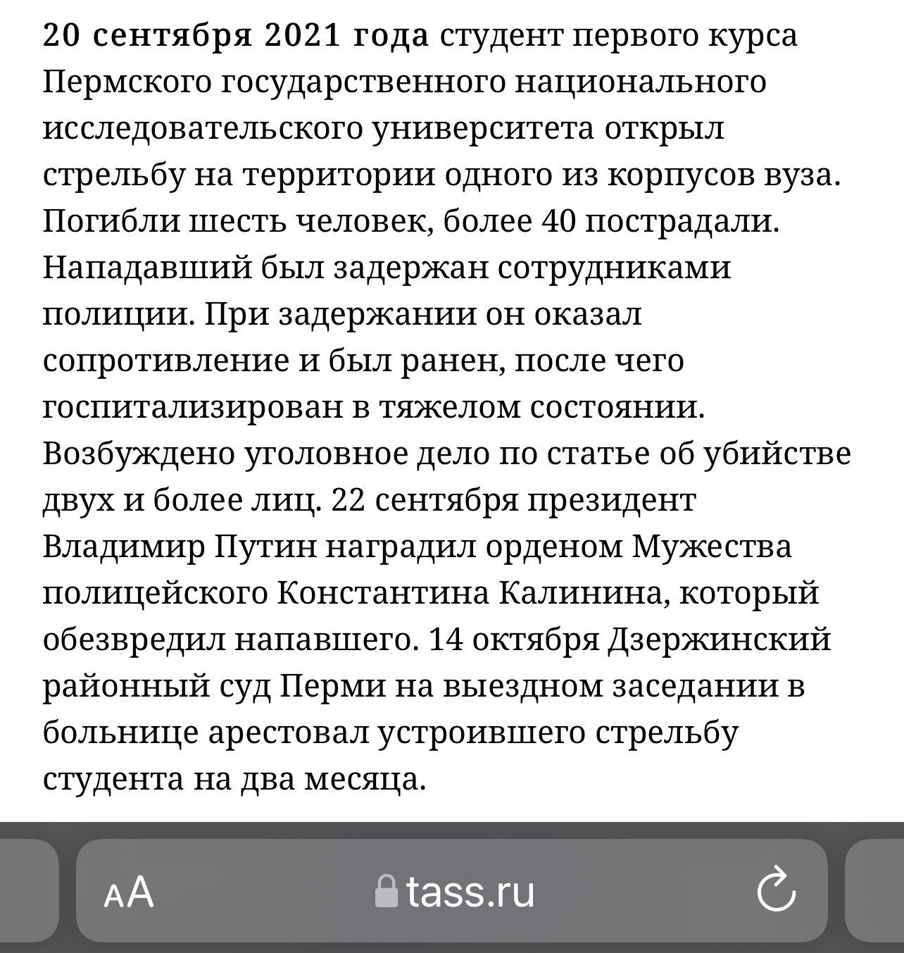 Кстати, СМИ почему-то забыли про «повестку», когда писали о стрельбе в Перми, а ведь могли бы! Стрелявшего студента не назвали ни антимасочником, ни антиваксером, странно. Как-то это всё не бьется с вашей теорией, да? Но вы видите только то, что сами хотите видеть.