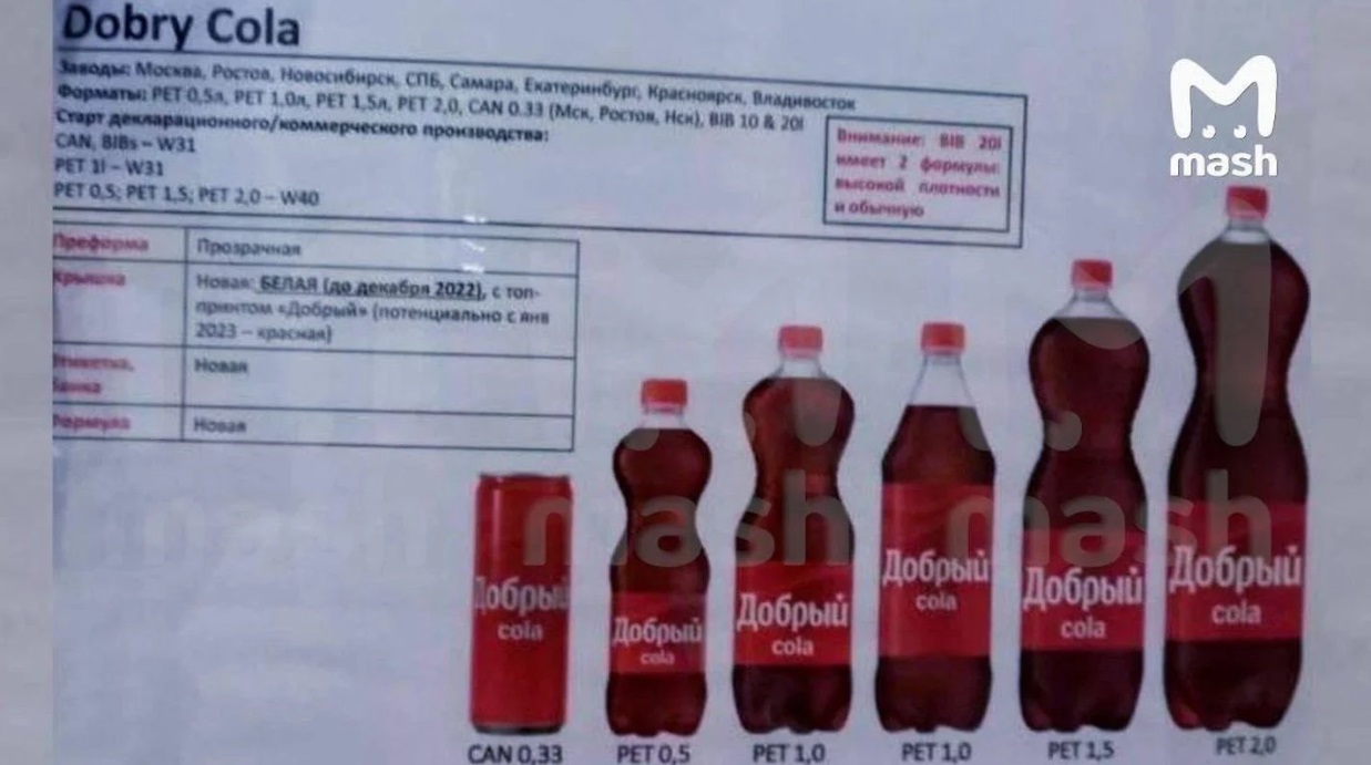 Тут поважнее идеи выдвинули:"В России поменяют названия напитков Coca-Cola, Fanta и Schweppes — их будут выпускать под брендом «Добрый» - «Добрый Cola», «Добрый Orange» и «Добрый Черри».
