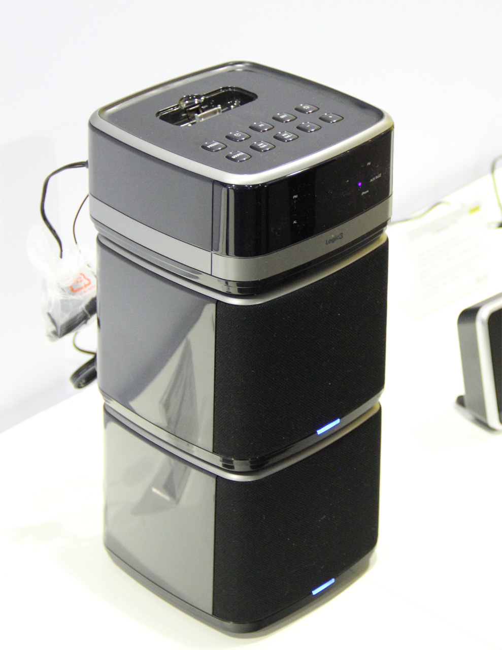 Вот такой хайтековый док для айфона. Теплый ламповый звук, между прочим. В комплект входит лампа. Врубаете айфон, врубаете лампу. Звук сразу теплеет.